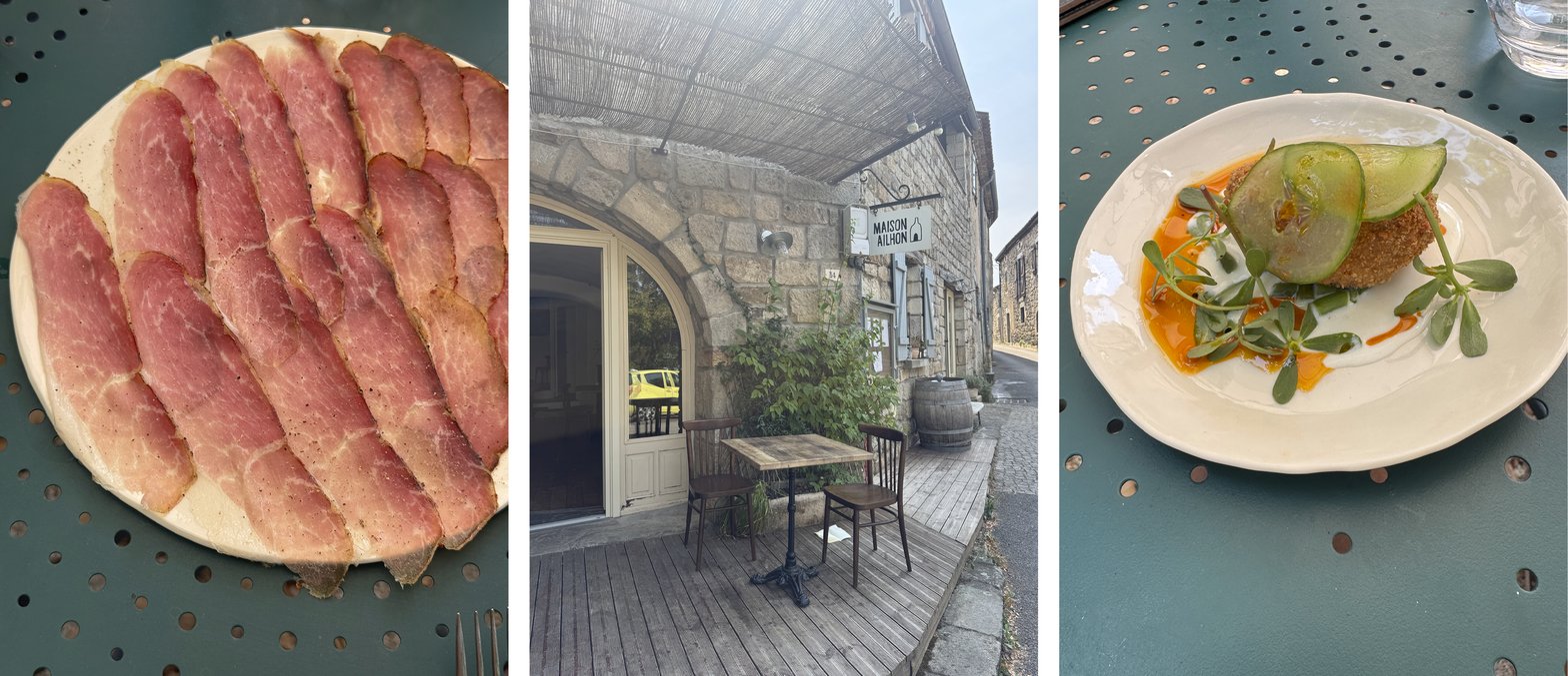 Partir à la recherche du restaurant parfait s'apparente à la quête de Sisyphe : une grosse galère sans cesse renouvelée. Sans compter le fait que trop de paramètres exogènes au restaurant lui-même viennent entrer en compétition avec votre appréciation. Si la conversation de votre convive est aussi plate que les assiettes, aucune chance de conserver un souvenir aimable de la table, fut-ce-t-elle excellente. Il faut savoir donc se laisser surprendre. N'avoir aucune attente particulière. Et se laisser guider, un peu aussi. C'est comme cela que j'ai découvert le village d'Ailhon et la Maison éponyme. En traçant une diagonale (du vide) entre deux étapes automobiles de mon périple estival. Car entre Chanteuges - pittoresque village médiéval de la Haute-Loire - et Bonnieux - chicissime village du Luberon - s'est installée cette adresse de l'Ardèche, à quelques lacets pentus d'Aubenas. Sur une placette, à l'ombre des platanes, la terrasse grillonnante ("tss-tss-tss"), déboulent des assiettes rafraîchissantes pour le corps et l'esprit. Des charcuteries maison translucides, des verres épatants de vins vivants et tendus (d'ici et d'ailleurs), des mets aimants délicieusement assaisonnés s'enchaînent. Et un prix pour le déjeuner tout à fait enthousiasmant au regard de notre plaisir (28 € le midi, 46 € le dîner). Alors oui, d'aucuns diraient que le duo à sa tête formé chez Septime et à l'Auberge de Chassignolles coche toutes les cases de l'air du temps. Et alors ? Que la "trend" des auberges de village existe depuis un moment (coucou la Roche, la Sauvage, etc…). Et alors ? Si on pouvait quadriller l'ensemble du territoire d'établissements aussi délicieux, électriques et sympathiques, la quête gastronomique de Sisyphe n'en serait que facilitée. Merci pour lui.